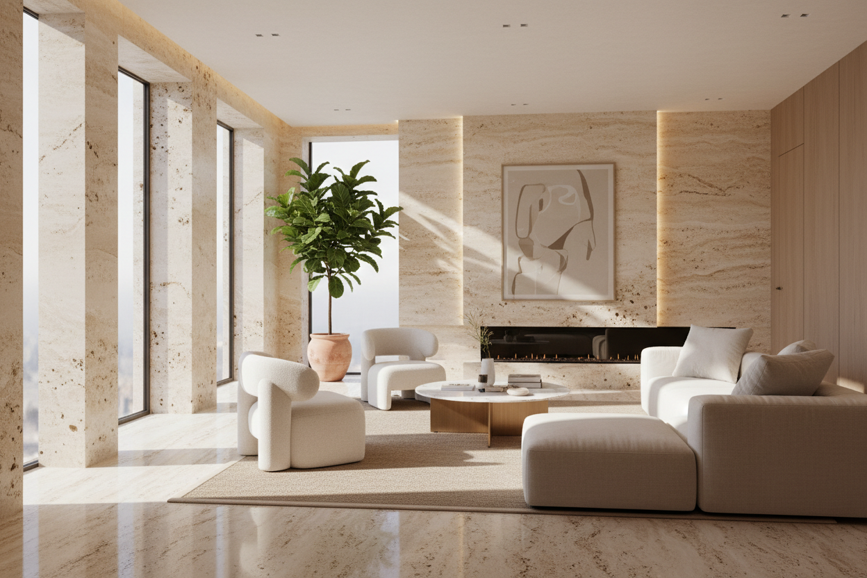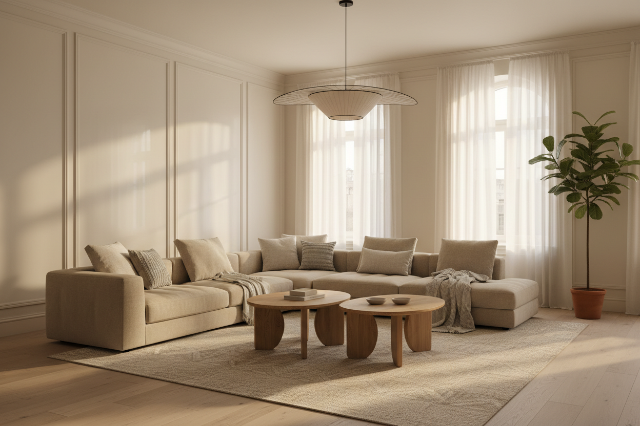 Gestalten Sie eine luxuriöse Sitzanordnung mit perfekt aufeinander abgestimmten Sesseln und Couchtischen.